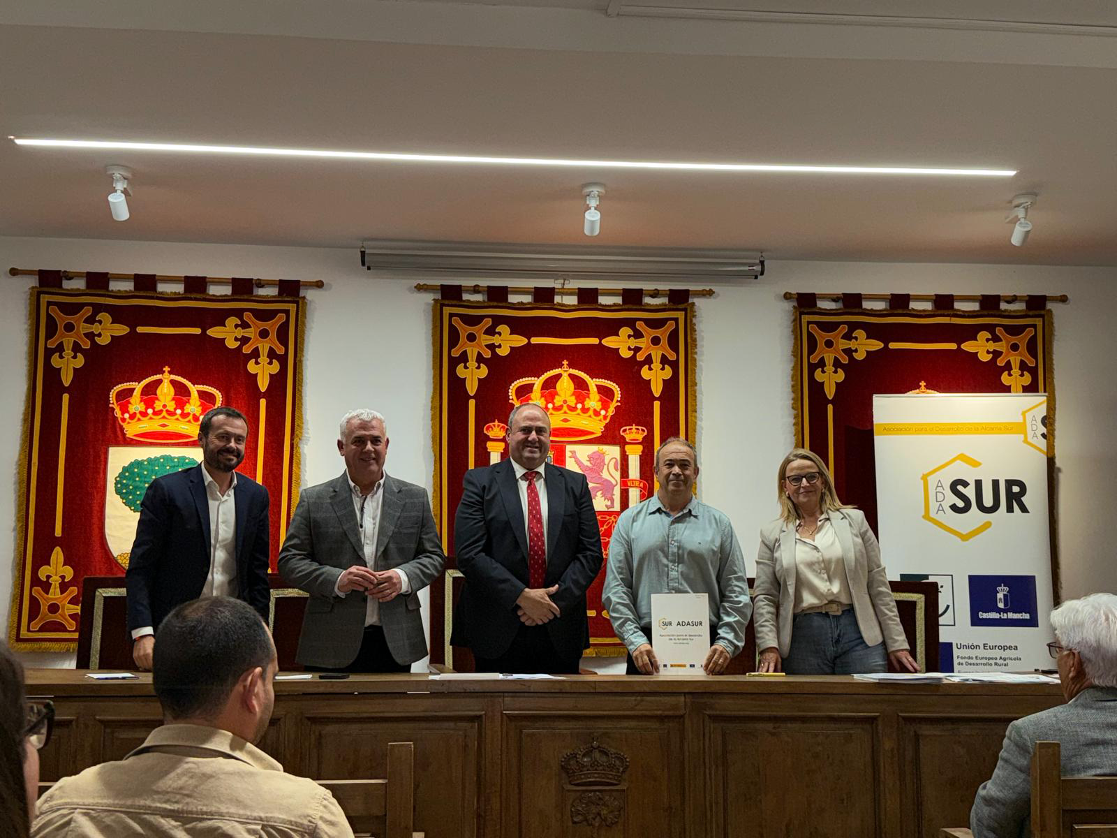 El acto de firma, que se celebró en el Ayuntamiento de Mondéjar, contó con la presencia de la presidenta de ADASUR, Esperanza Magán; el consejero de Agricultura, Ganadería y Desarrollo Rural, Julián Martínez Lizán; el director general de Desarrollo Rural, José Juan Fernández; el delegado de la Junta de Castilla-La Mancha, José Luis Escudero; el delegado provincial de Agricultura, Ganadería y Desarrollo Rural, Santos López; el alcalde de Mondéjar, José Luis Vega; el presidente de RECAMDER, Jesús Ortega, y los promotores de los proyectos que suscribieron los contratos.
